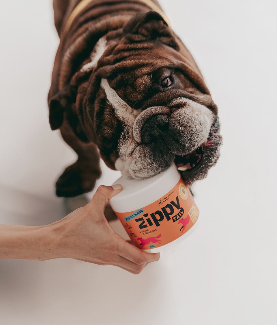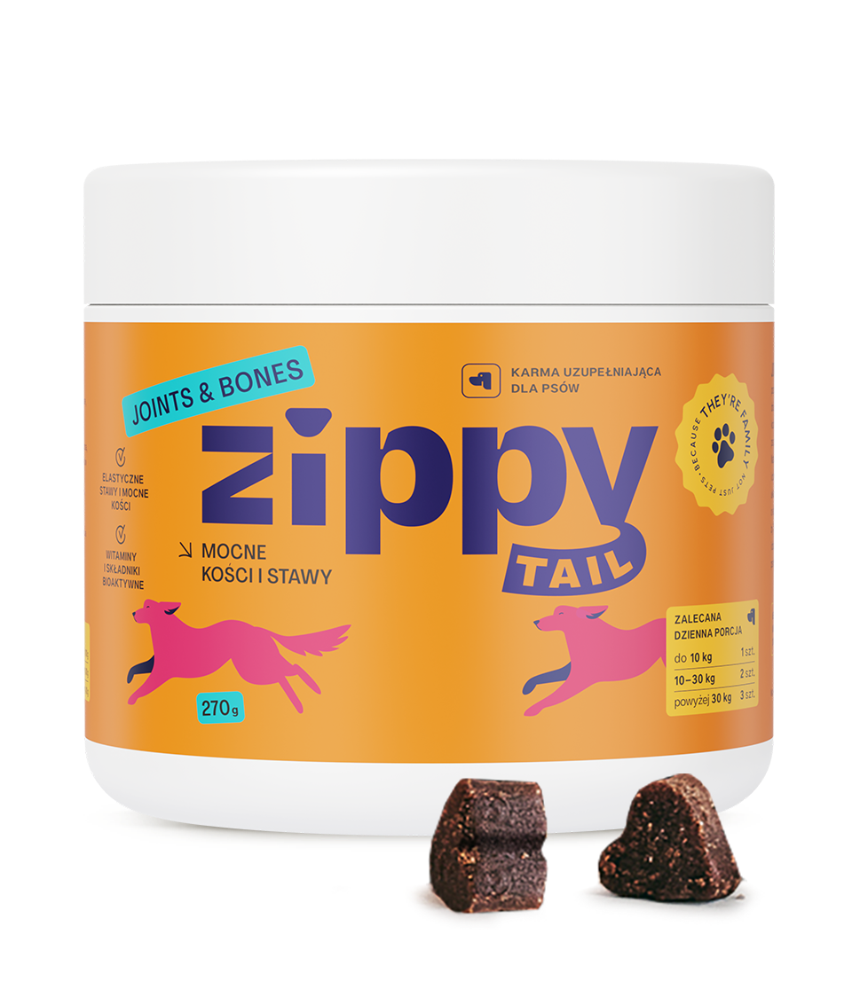 Suplement diety JOINTS & BONES wspiera chrząstkę stawową, tkanki okołostawowe, ścięgna i więzadła podczas codziennej aktywności oraz pomaga w lepszej i szybszej regeneracji po wysiłku. Twój pies będzie skakał z zachwytu!