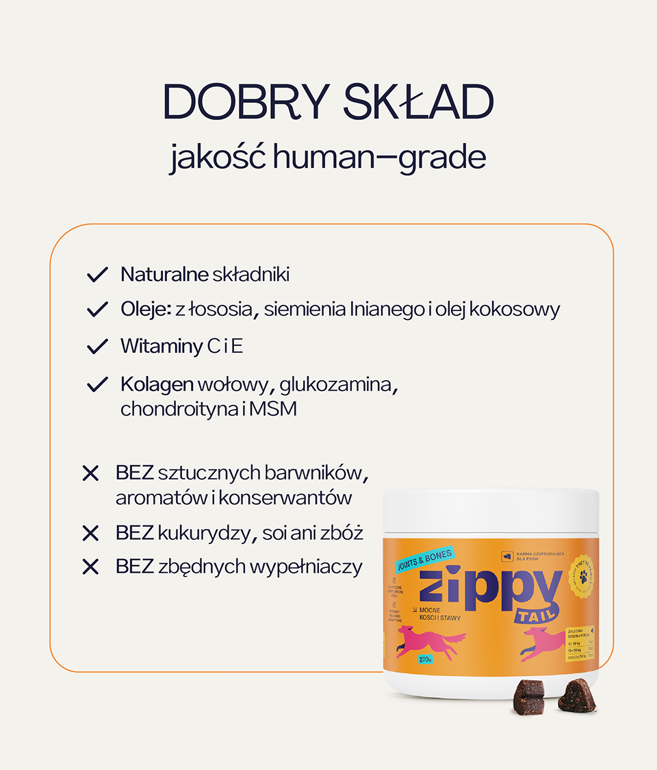 JOINTS & BONES to wygodne wsparcie dla sprawnych łap. Naturalna forma troski – bez kombinowania, za to z sercem 🐾