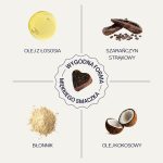 Zawiera naturalne składniki: olej z łososia, siemię lniane, kolagen i witaminy, które działają od pierwszej dawki.